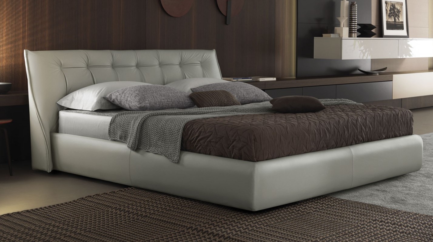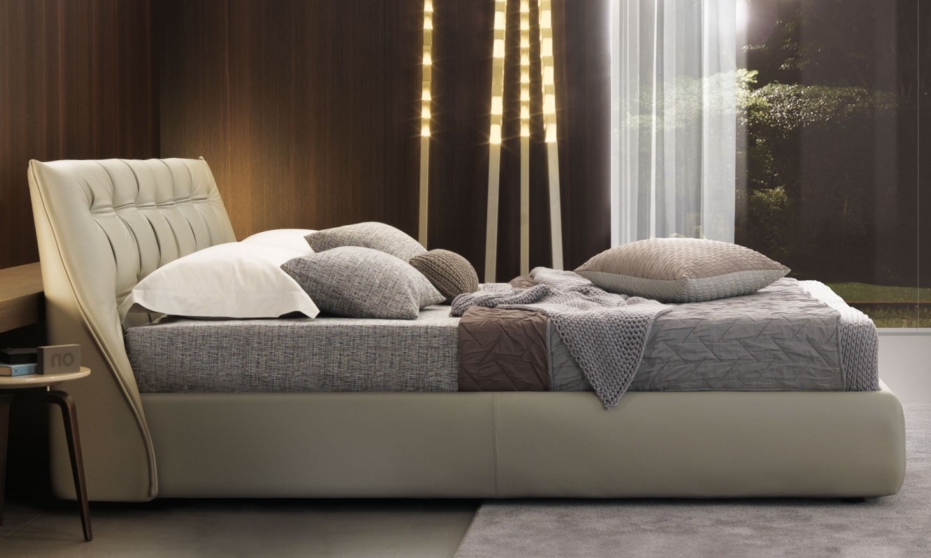 Cama con cabezal tapizado tela o piel