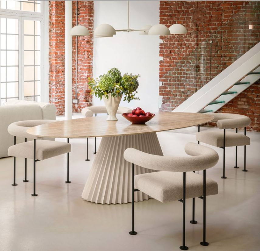 Mesa de comedor con base acero pintado o maderas .Tapa/Encimera en maderas y porcelánicos con diferentes y variados acabados a elegir de nuestro muestrario de materiales físico en exposición.