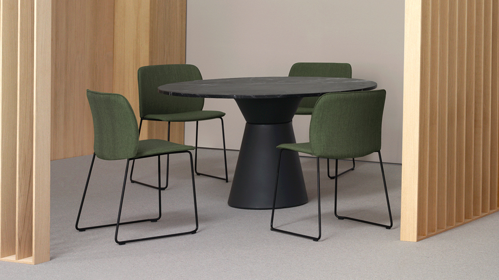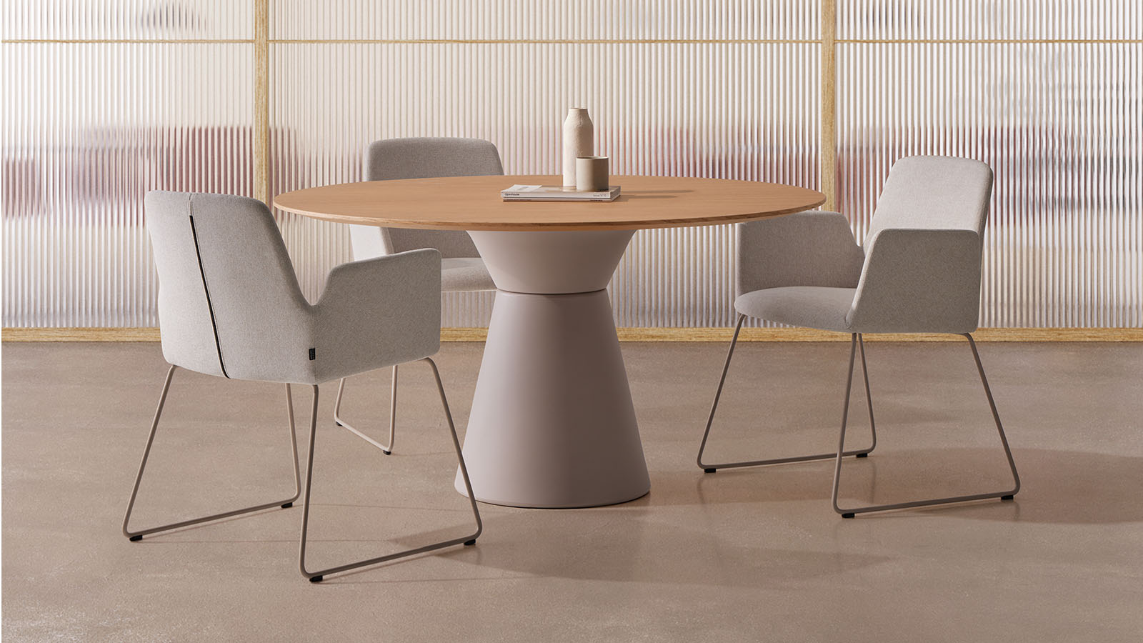 Mesa de comedor con base en polipropileno a elegir en acabados rugosos efecto estuco o lisos efecto metal en gran variedad de colores .Tapa/Encimera en maderas de roble y nogal,lacados texturados,hpl,etc