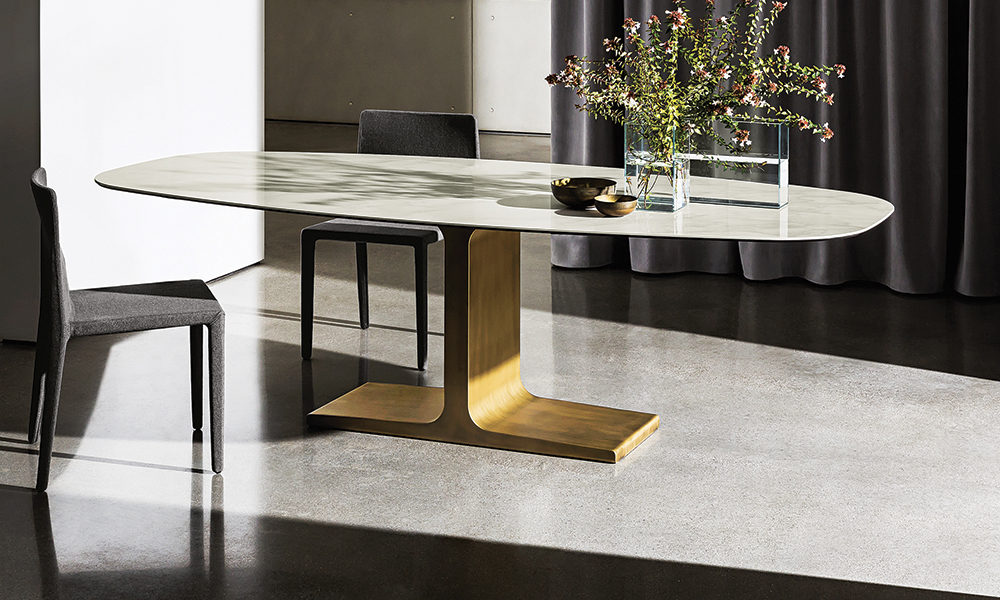 Mesa de comedor con base en metal en 8 acabados .Tapa/Encimera en maderas,lacados,cristales lisos o marmolados, brillo o mate con diferentes y variados acabados a elegir de nuestro muestrario de materiales físico en exposición.