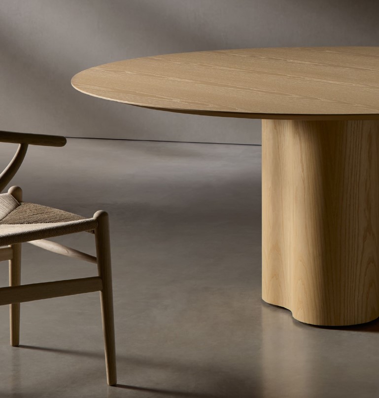 Mesa de comedor con base en madera a elegir en gran variedad de colores .Tapa/Encimera en maderas de roble y nogal,lacados texturados,hpl y marmol