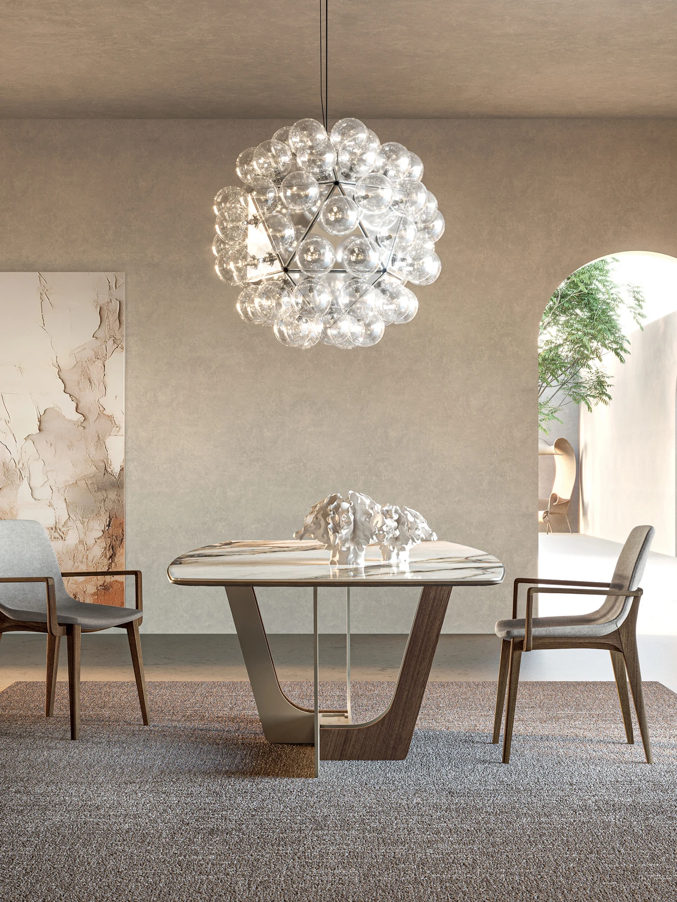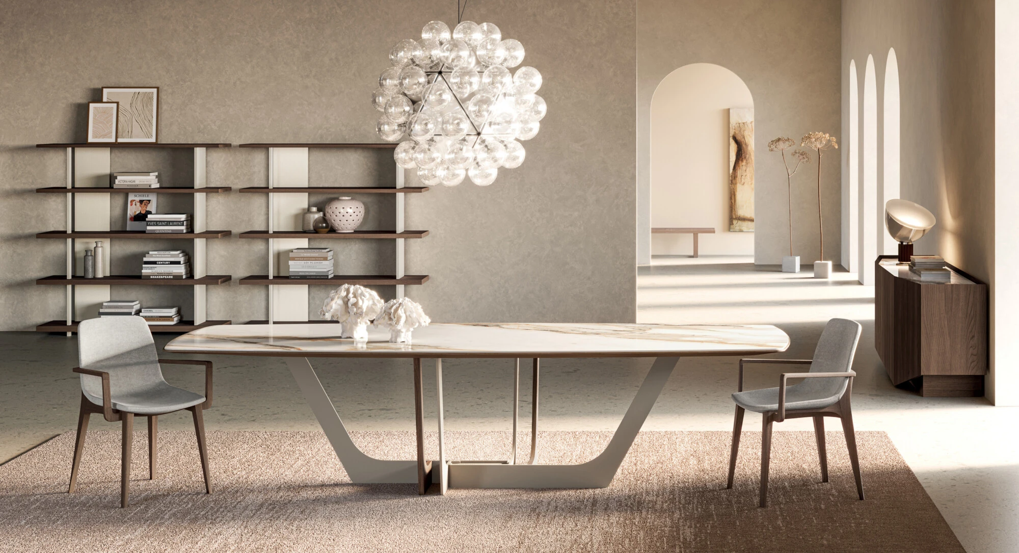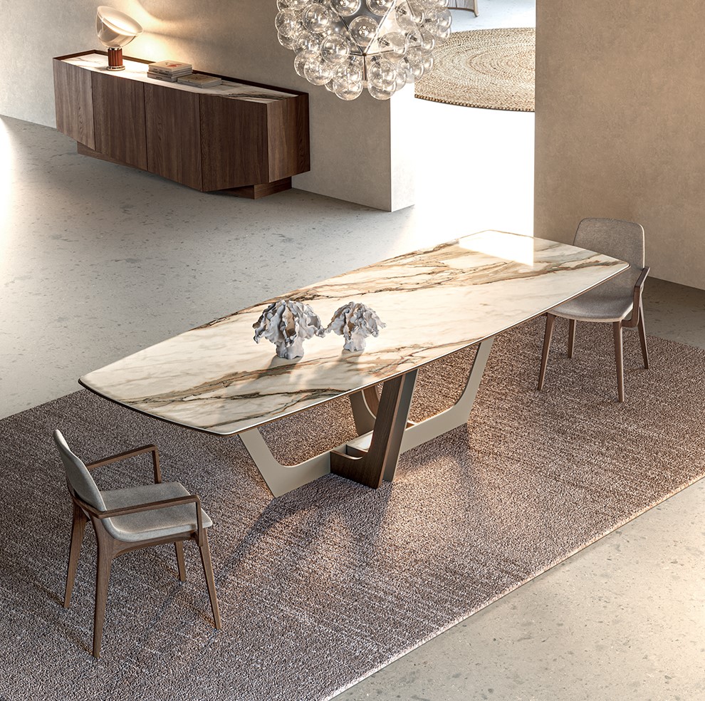 Mesa de comedor con base de metal(acero)en acabado a elegir.Tapa/Encimera en maderas y porcelánicos con diferentes y variados acabados a elegir de nuestro muestrario de materiales físico en exposición.