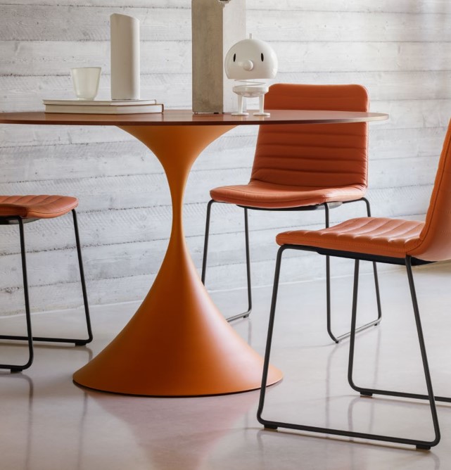 Mesa de comedor con base acero pintado .Tapa/Encimera en maderas y porcelánicos con diferentes y variados acabados a elegir de nuestro muestrario de materiales físico en exposición.