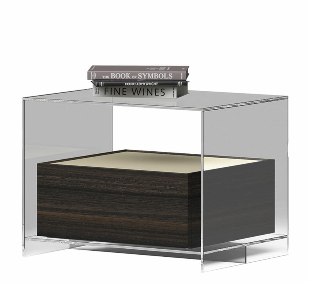 Mesita de noche madera y cristal con medidas y acabados a elegir.